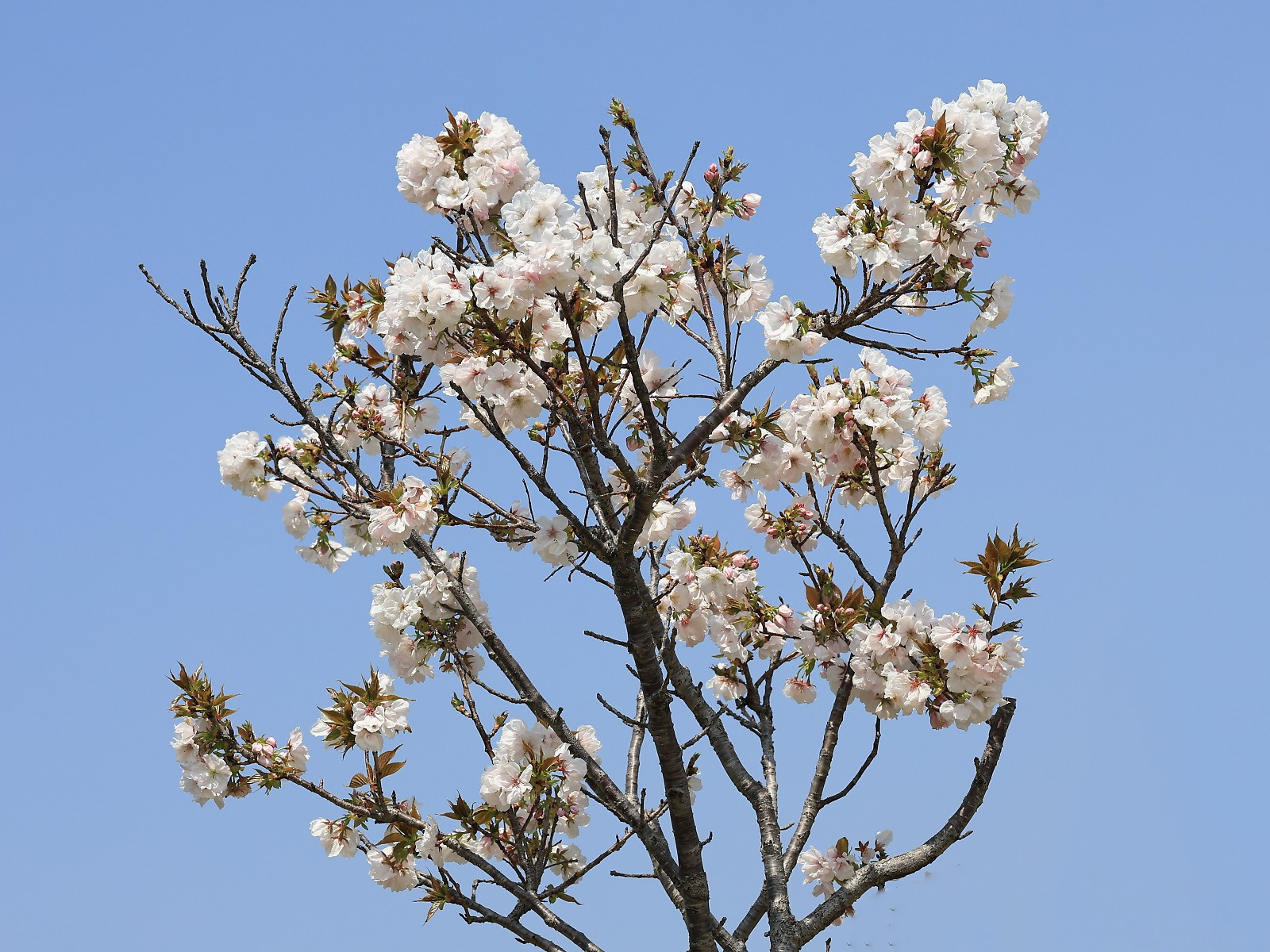 MEMO: 満開時期を迎えた有明の全体像ですが、植栽して8年目の若木ですので、 木はまだ成長しておらず、花は大輪で密集して咲きますが豪華さは全くない状態です