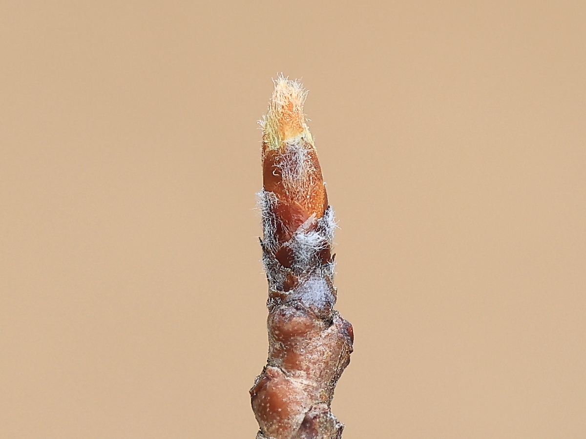 MEMO: 冬芽が膨らみ明らかに冬芽が長くなっており、先端の黄緑色も はっきり見えている状態で、江戸彼岸の特徴としての短毛も増えています