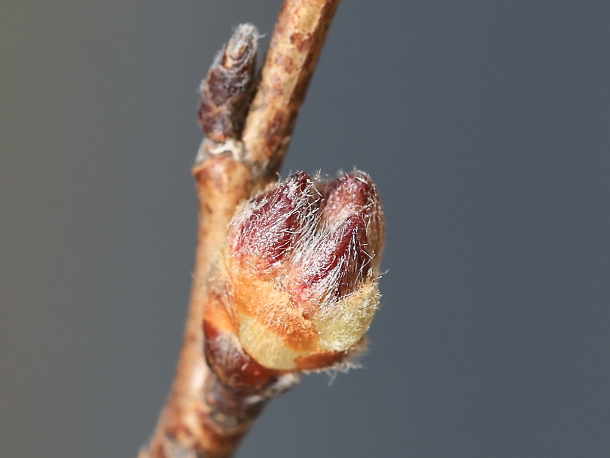 MEMO: 花芽の膨らみが更に増し、先端が割れて、蕾が3個ほど出始めた 状態で、江戸彼岸特有の蕾にも短毛が密集しているのがわかる状態です