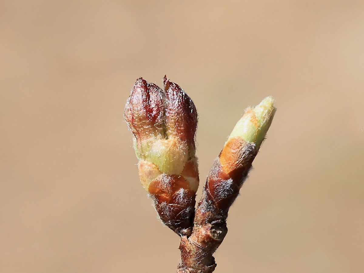 MEMO: 花芽の膨らみが更に増し、先端が割れて、蕾が2~3個 出た状態で、蕾の色が暗赤色をしているのは江戸彼岸の特徴です