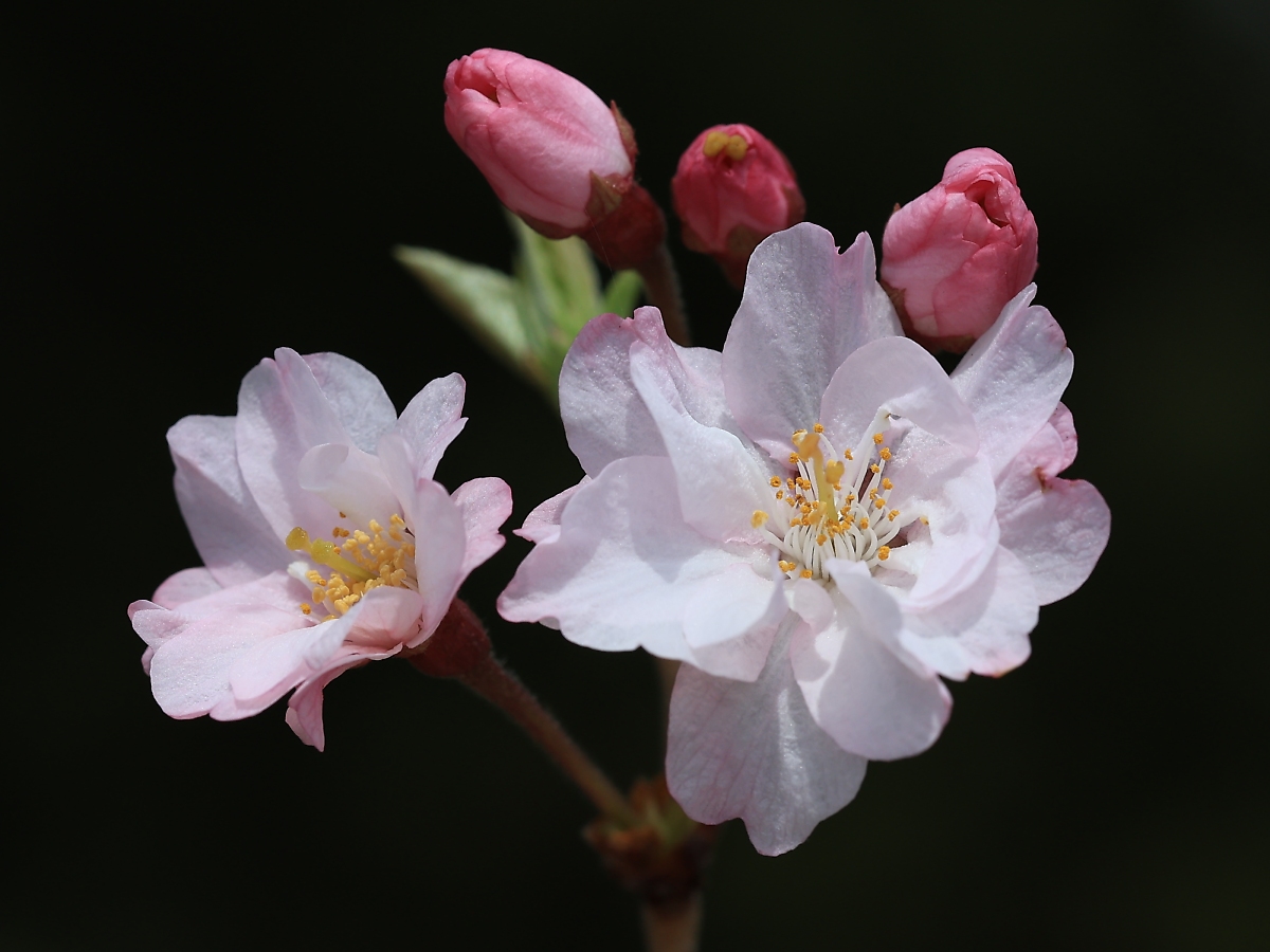 MEMO: 満開時期を迎えたの八重紅枝垂で、 花は小輪ですが、淡紅色の花はとても美しく可愛い花姿です