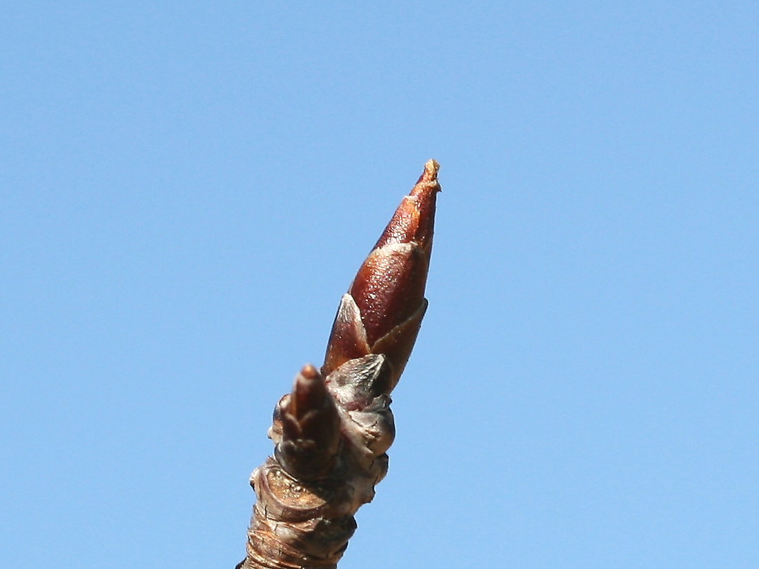 MEMO: 大寒桜は早咲きのため、例年ではそろそろ膨らみ始める時期であるが、 この通り全く堅い冬芽の状態で、この冬芽は明らかに葉芽(ようが)のようである