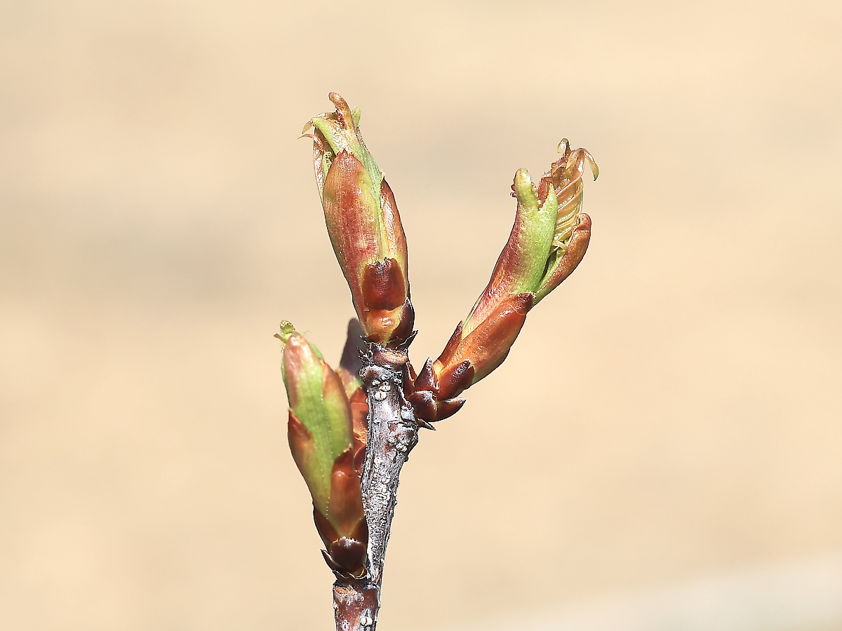 MEMO: 冬芽が膨らみが更に増し、先端が割れ、葉らしきものが 出始めている状態で、この様態でもまだ蕾らしきものは見当たらない状態です