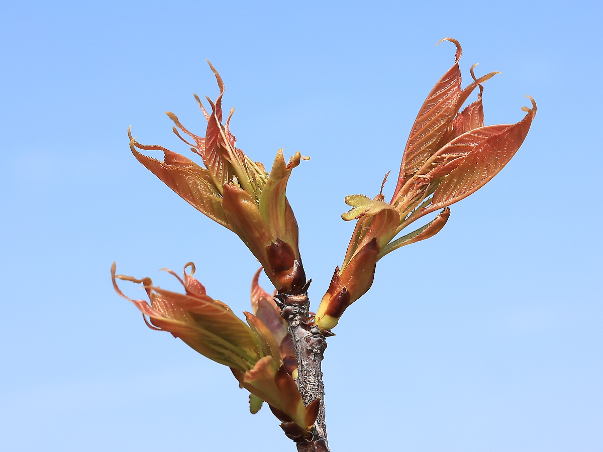 MEMO: 茶色の若葉が出た状態ですが、植え替えた若木のため、 この様態でもまだ蕾らしきものは見当たらない状況です