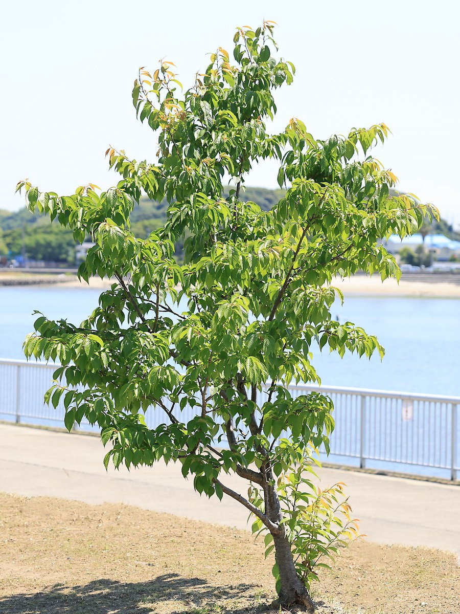 MEMO: 植栽9年目の大島桜で、樹形は傘状で、樹高は 3.1 mと 植栽9年目で3m超えは、当公園では普通の成長状態です