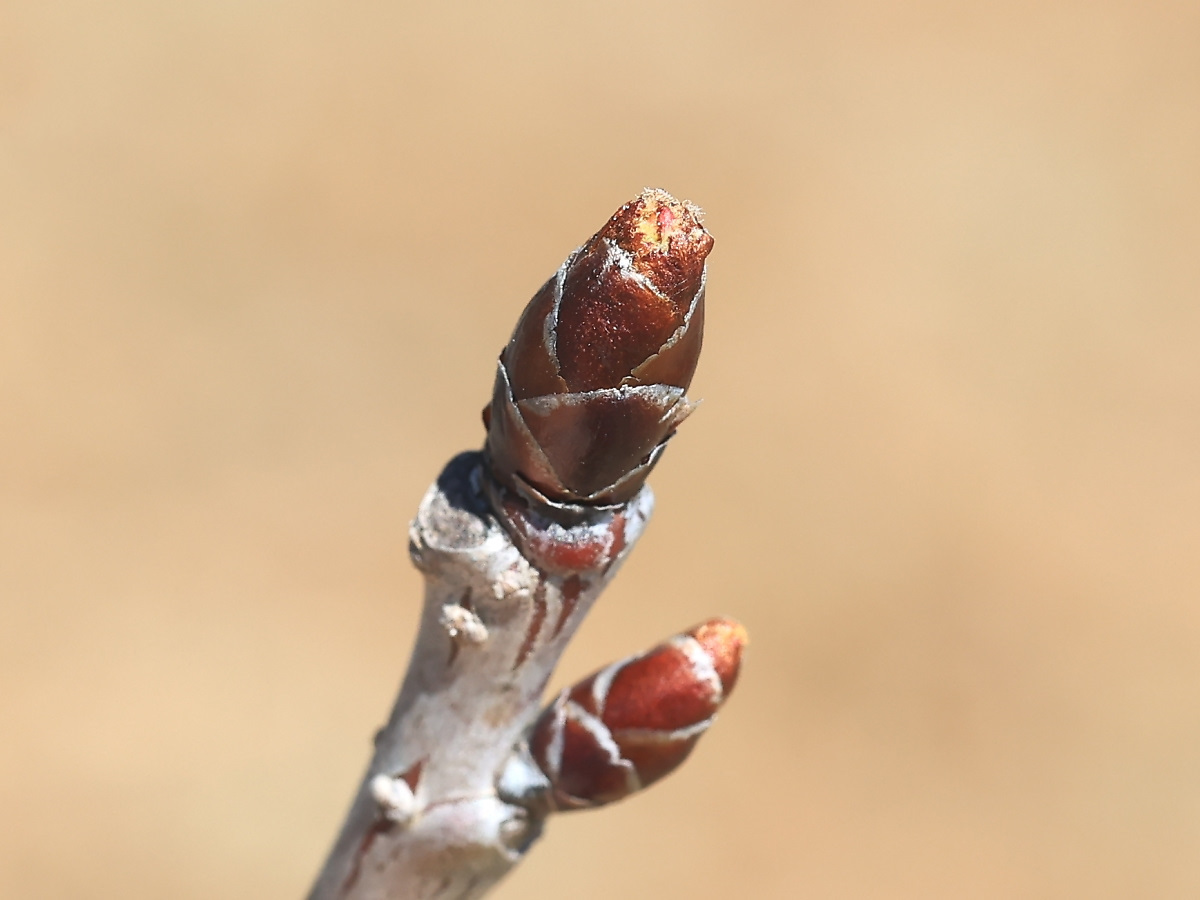 MEMO: 冬芽の膨らみが増して、先端が少し割れ かすかに葉か蕾らしき物が見え始めてきた状態です
