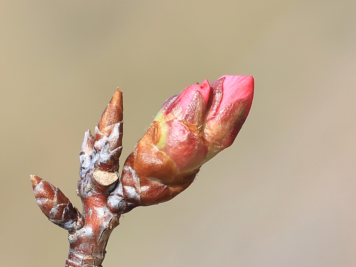 MEMO: 2月中旬の4月並みの高気温により一気に進み、 もう、このような蕾が出始めた状態で、開花も早まりそうです