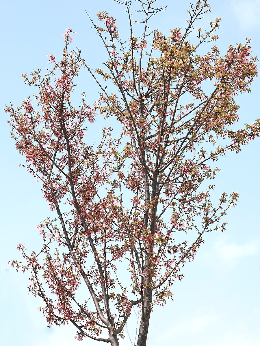 MEMO: 花時期も終わったオカメですが、花弁が散って 残った萼の濃紅色と赤茶色の若葉のため、全体的に 暗赤色をしており、まだ花が咲いているかのように見えます