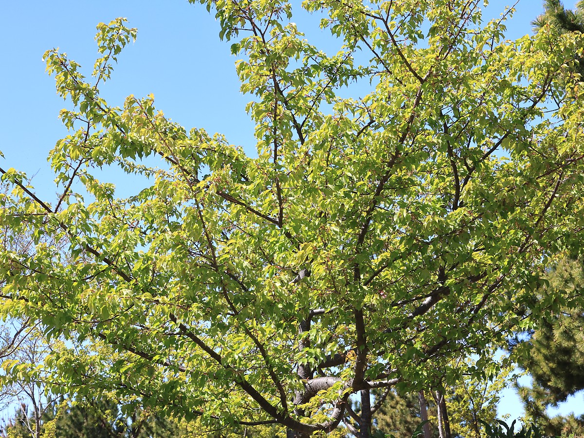 MEMO: 花の時期も終わりすっかり葉桜となった河津桜で、 この後は実が成長するのが楽しみな状況です