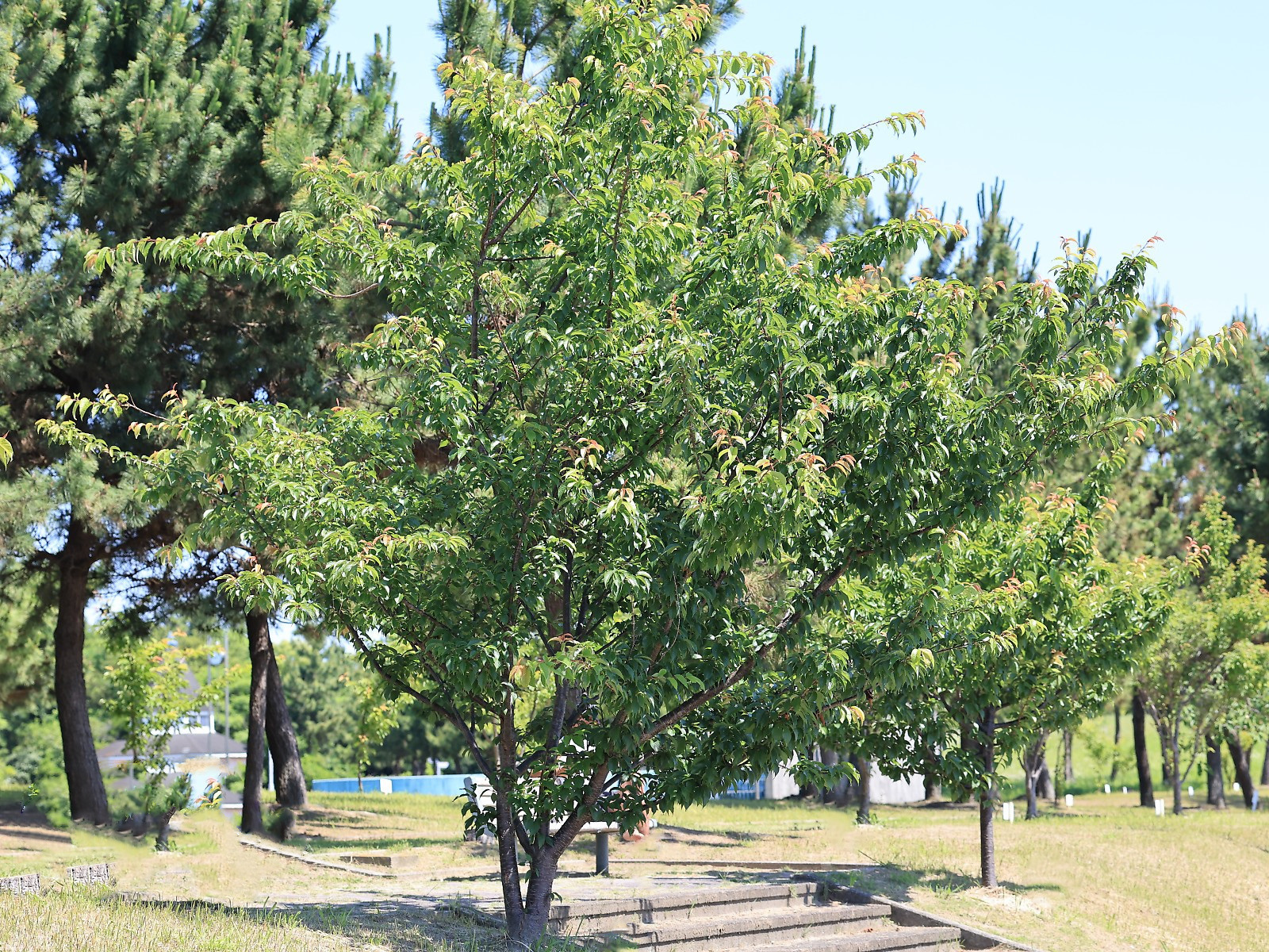 MEMO: 植栽9年目の寒桜で、樹形は盃状で、樹高は 4.7 mで、 当公園で植栽9年目としてはすこぶる順調に成長し、樹高が最も高い桜です