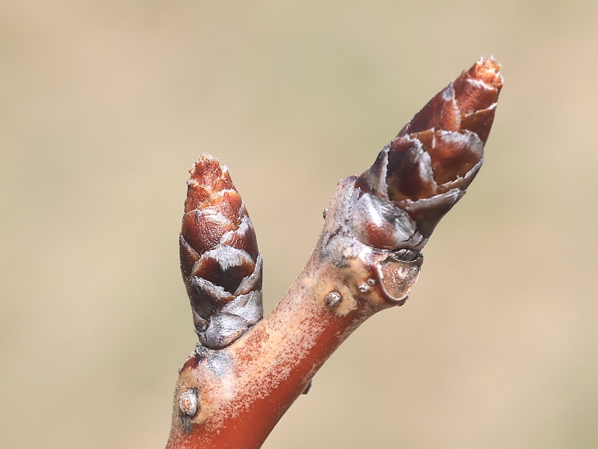 MEMO: 冬芽が伸び膨らみ始めており、先端が割れ始めた状態です