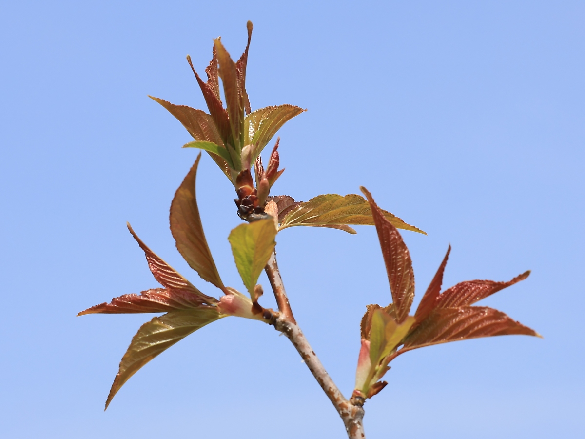 MEMO: 花時期も終わりごろになるとこのような赤茶色の若葉を広げ始めます