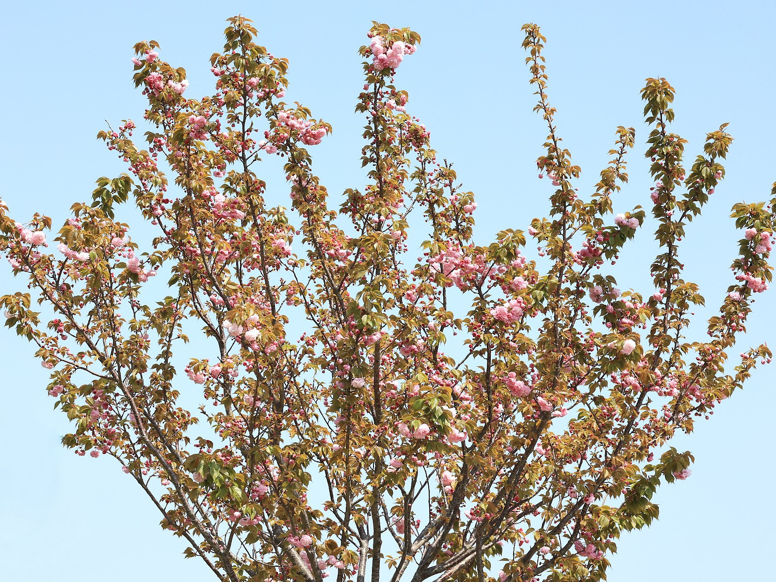 MEMO: 5分咲きの紅華の全体像ですが、この時点で このように若葉も開き始めており、花が葉に埋もれそうですが、 この先大輪の花が増え、花一色に変わっていきます