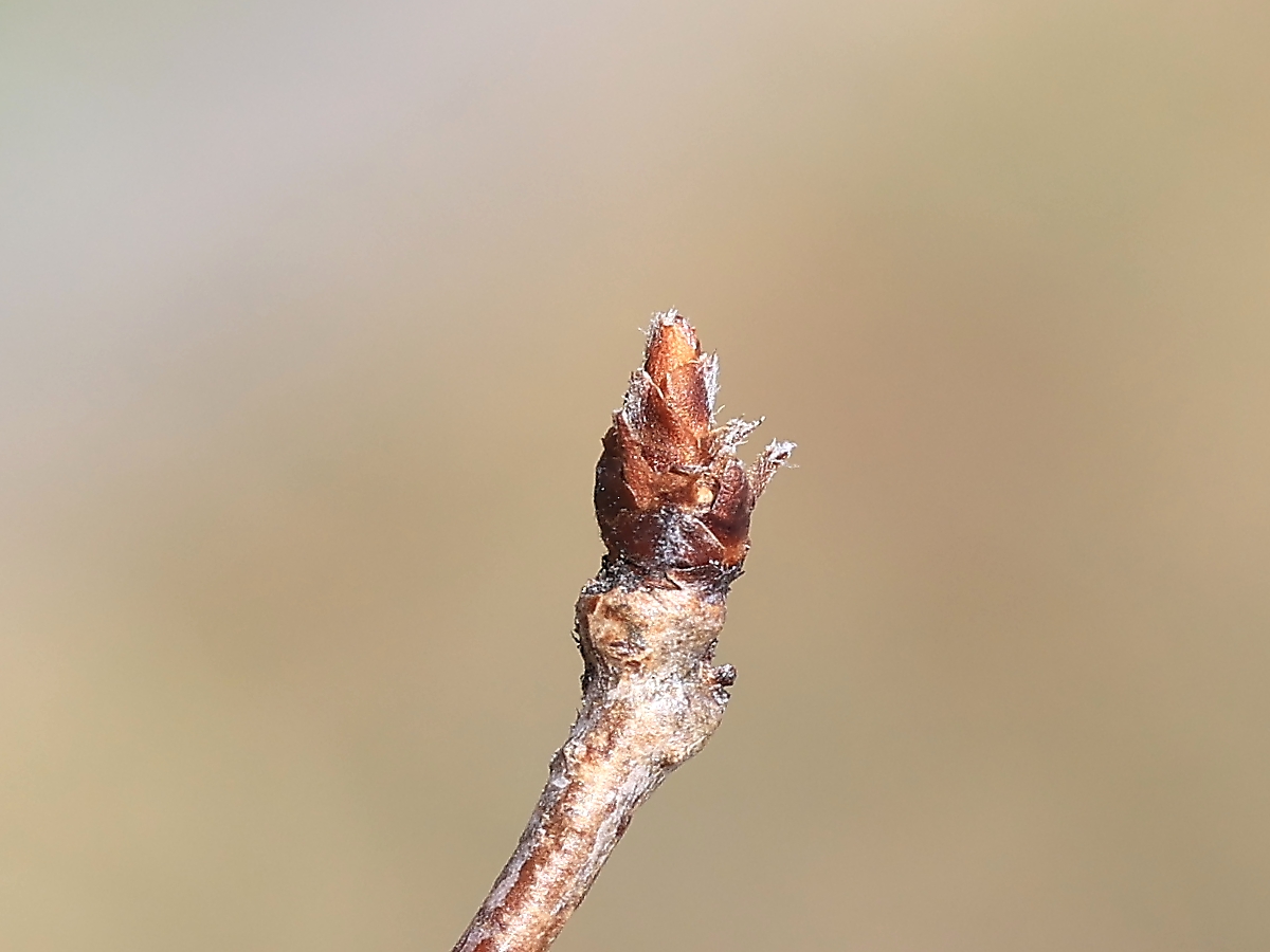 MEMO: 2月中旬の4月並みの高気温により、冬芽が少し 膨らみ始めたようで、先端が少し伸び始めています