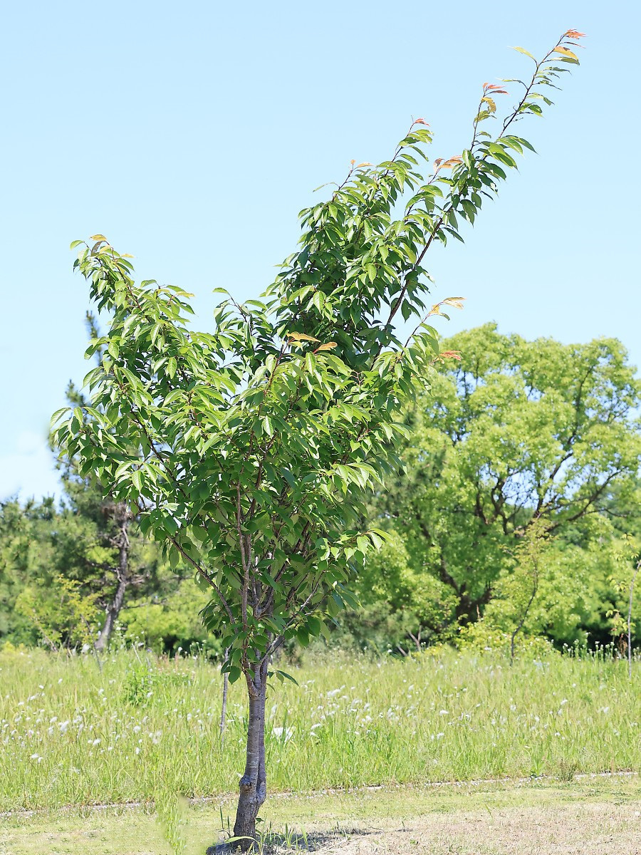 MEMO: 植栽8年目の佐野桜で、樹形は盃状で、樹高は 2.6 mで、 植栽8年目で3m弱と、当公園では普通の成長状態です