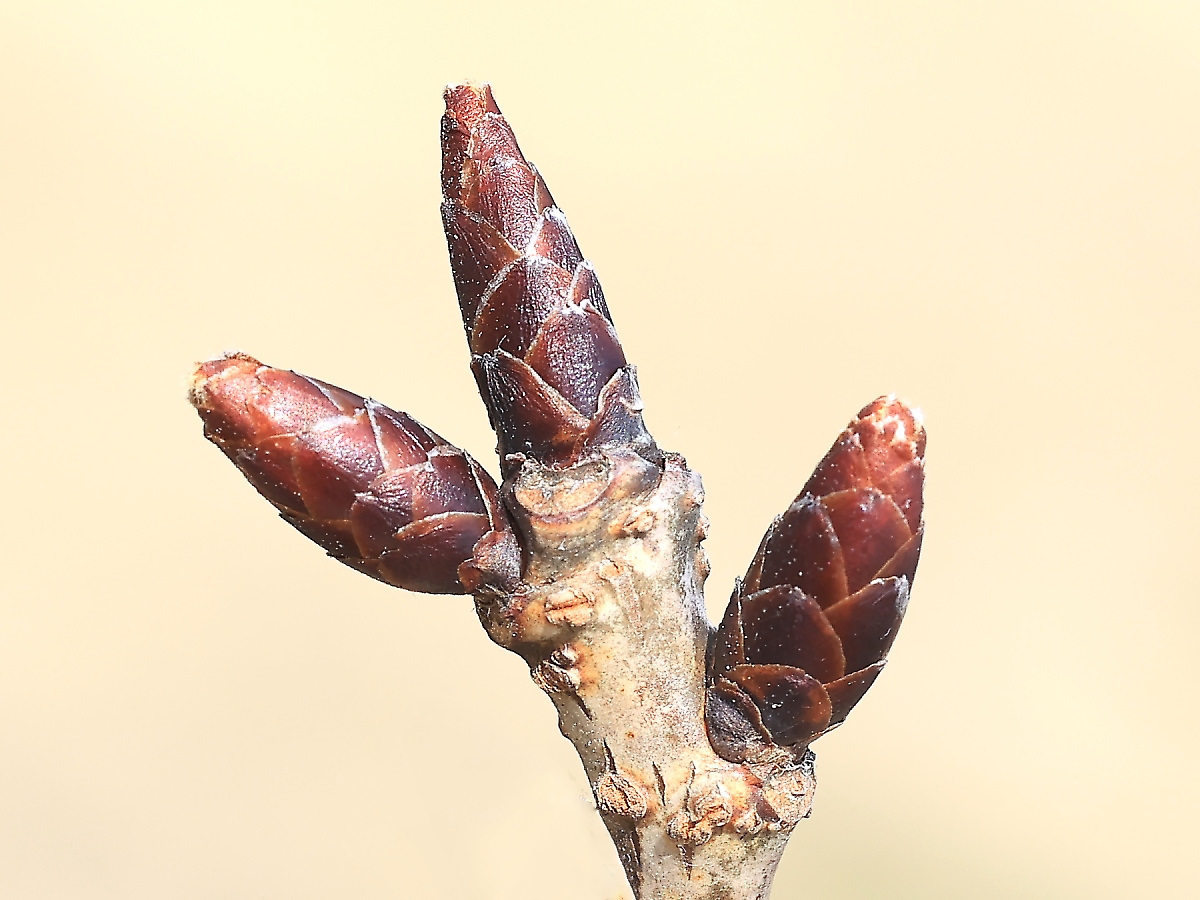 冬芽が伸びて膨らみ先端が割れ始めている状態です