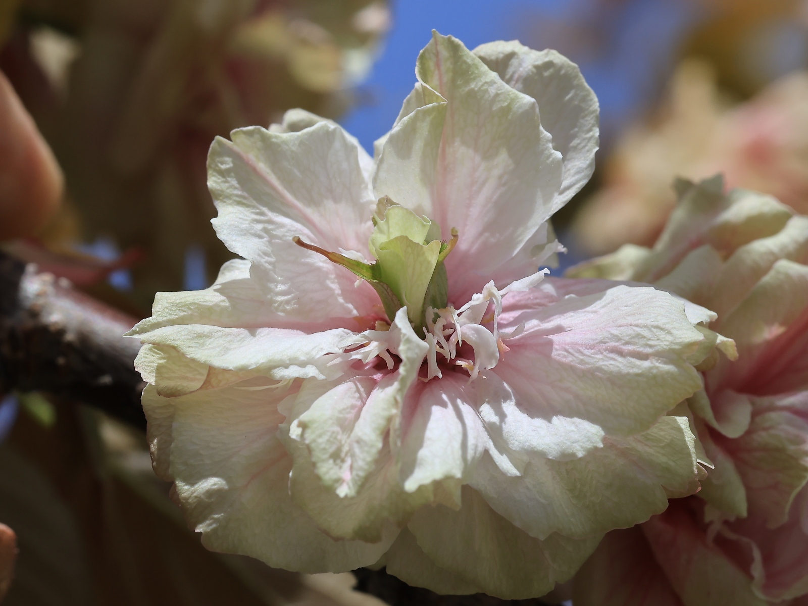 MEMO: 須磨浦普賢象の最大の特徴である、二段咲きの花を 撮影したもので、花の中心の緑色の2個の葉化雌しべの中から、 二段目の花弁が出てきた状態で、二段咲きは全部の花がなるわけではありません