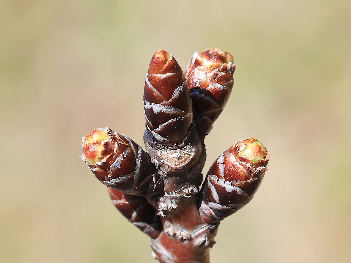 MEMO: 冬芽が膨らみ、先端が割れ、先端に黄緑色や紅色が見え始めた状態です