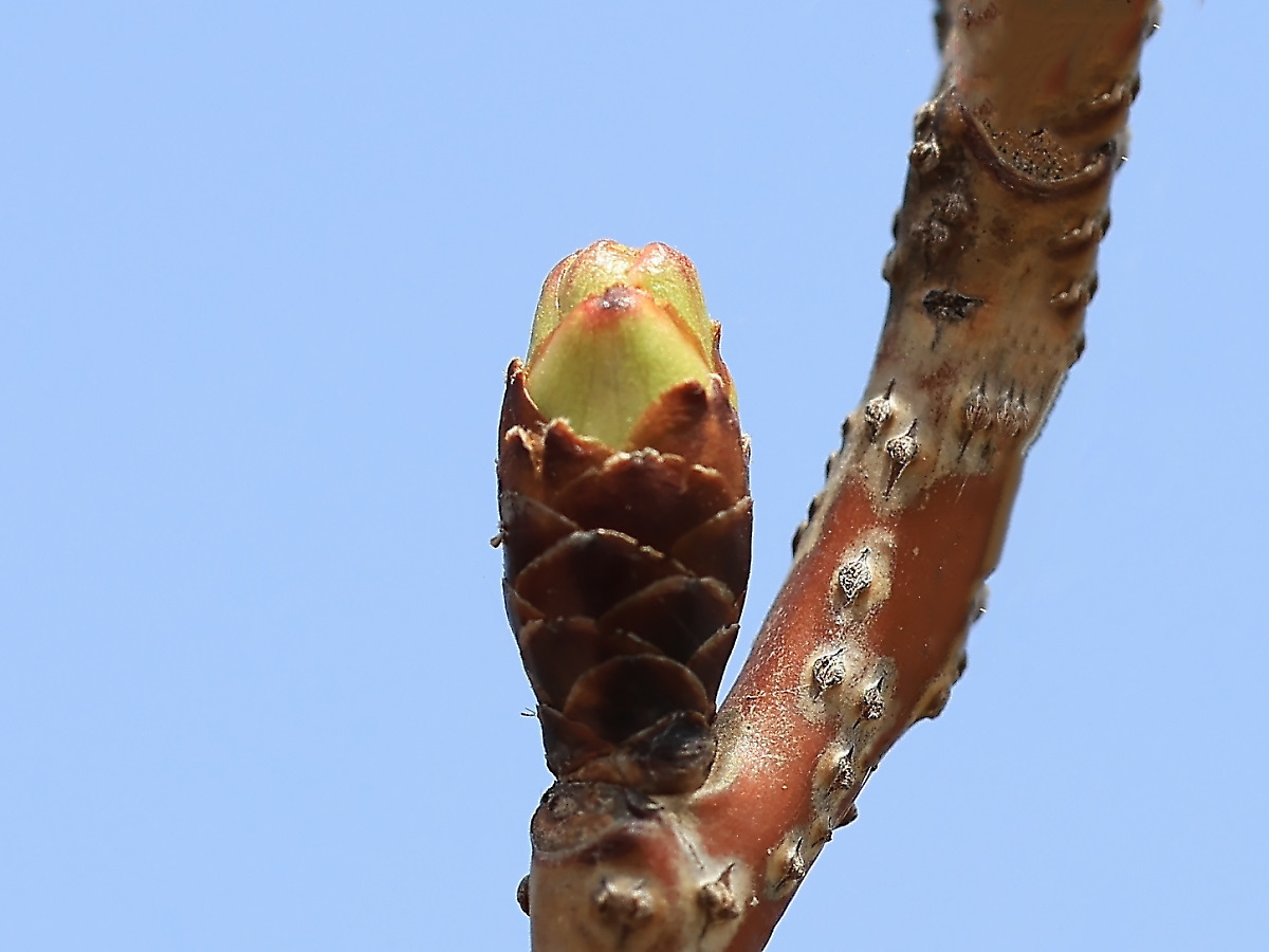 MEMO: 冬芽の膨らみが増し、先端に黄緑色や紅色がはっきり見える状態です
