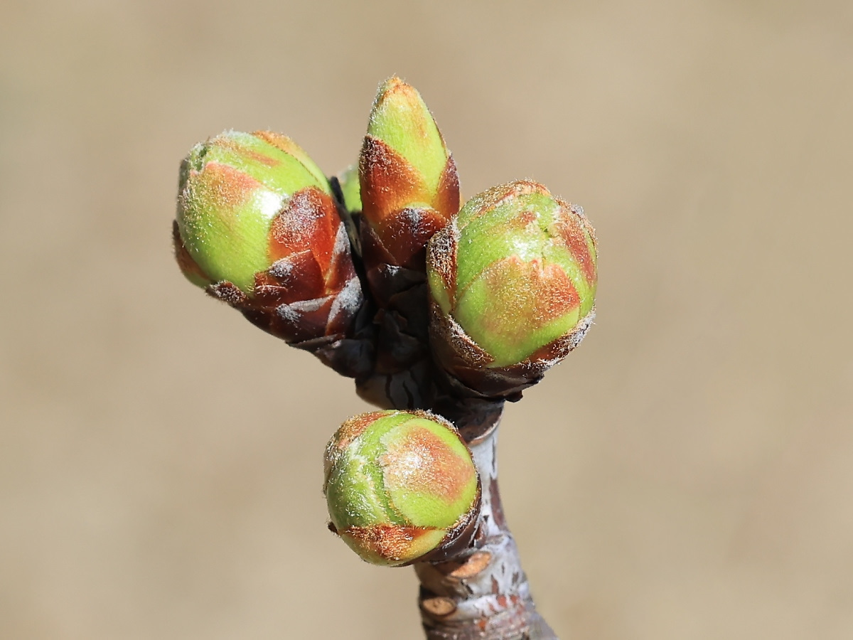 MEMO: 冬芽の膨らみが更に増し、先端が割れ始めており、 まもなく蕾が出始めると思われる