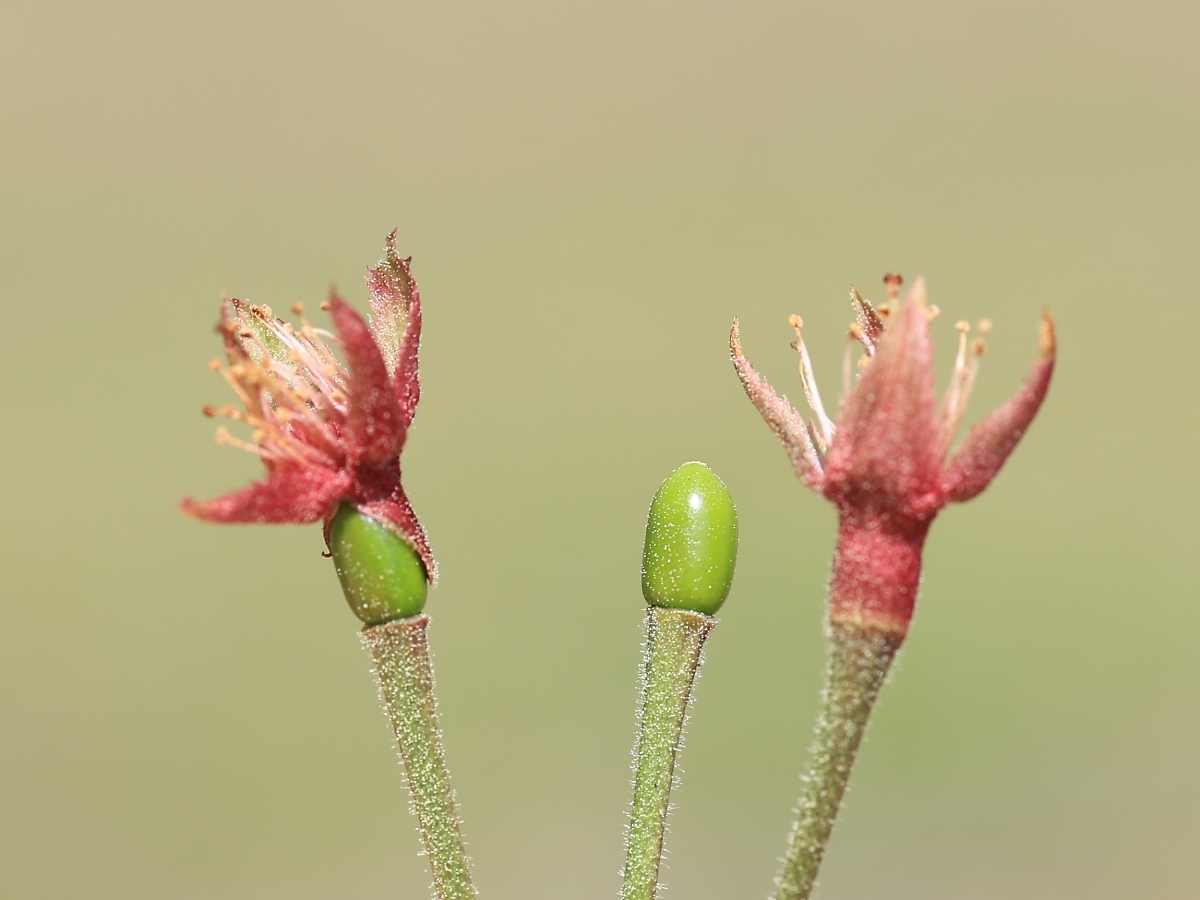 MEMO: 結実したばかりの衣通姫の実で、左はまだ萼などが残っており、 その萼などが落ちたのが中央の実で、できたばかりは緑色です