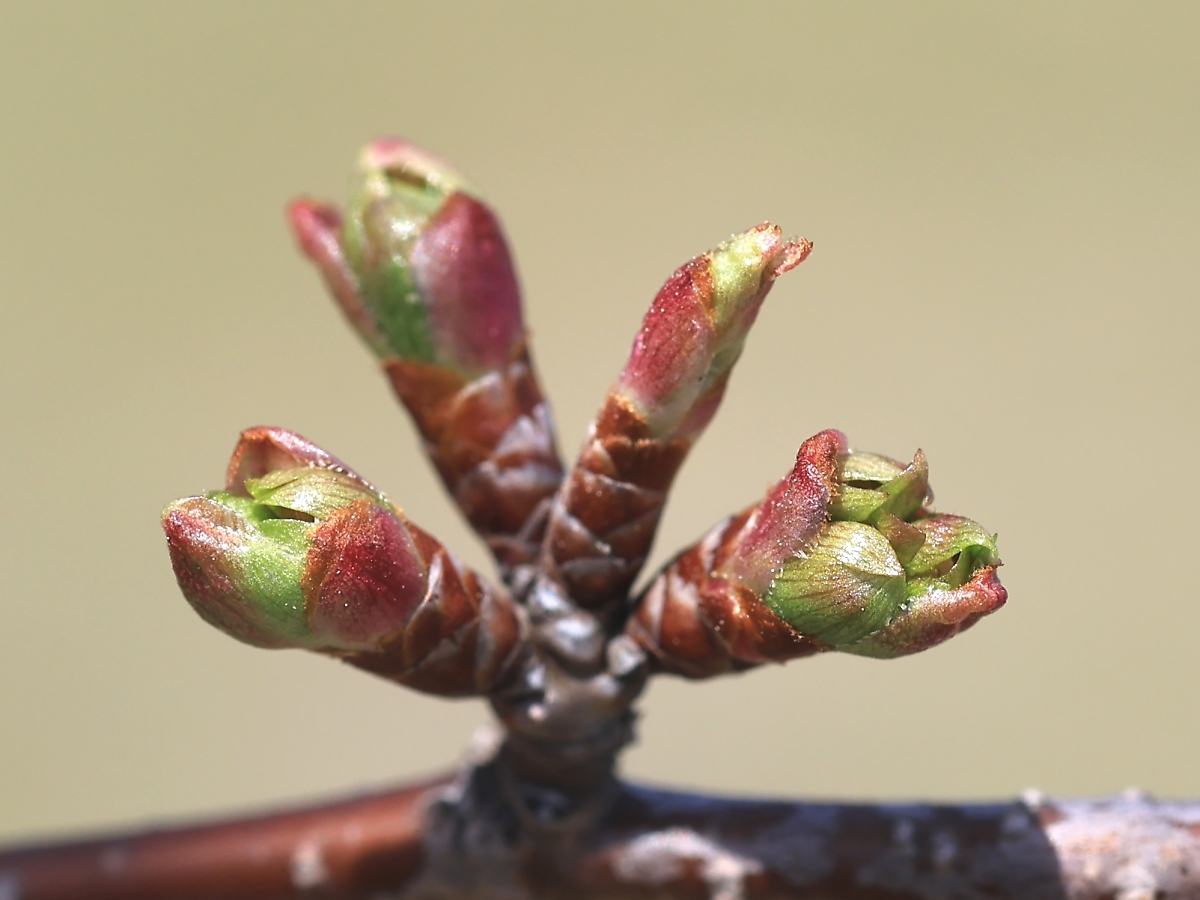 MEMO: 冬芽の膨らみが更に増し、左右の花芽からは 蕾が2~3個出始めている状態です