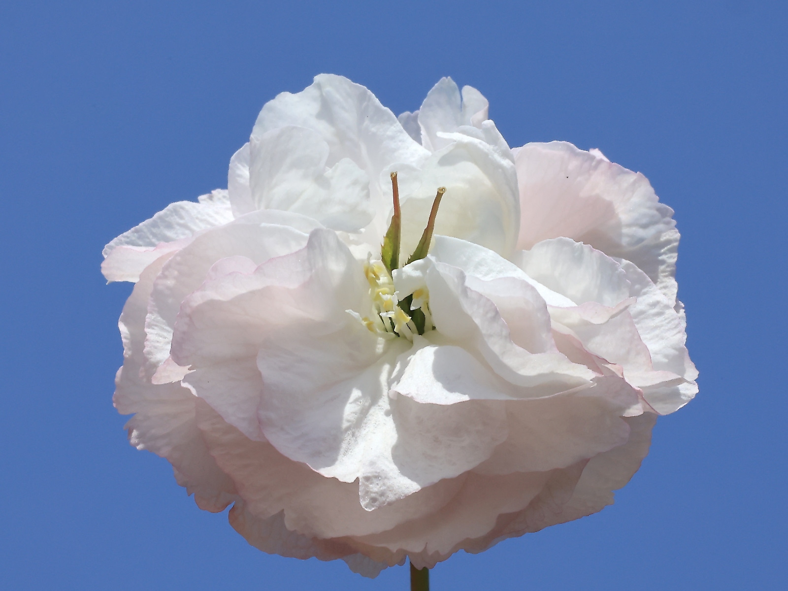 MEMO: 開花したばかりの普賢象で、八重咲きの大輪で、花色は 咲き始めは淡紅色で後に淡灰白色に変化し、とても豪華な花姿の桜です