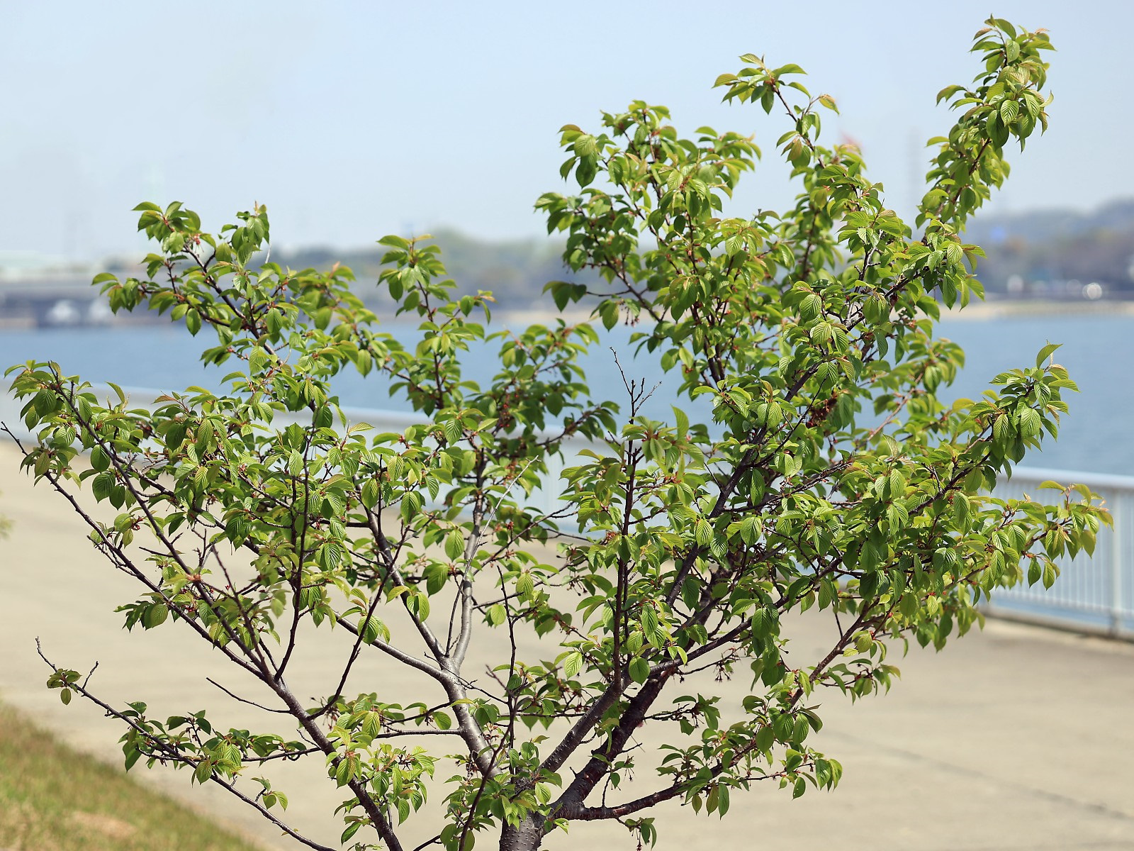 MEMO: 花時期も終わりすっかり葉桜となった雅で、 この先は双子の実の確認や実が熟すのを待つばかりの姿です