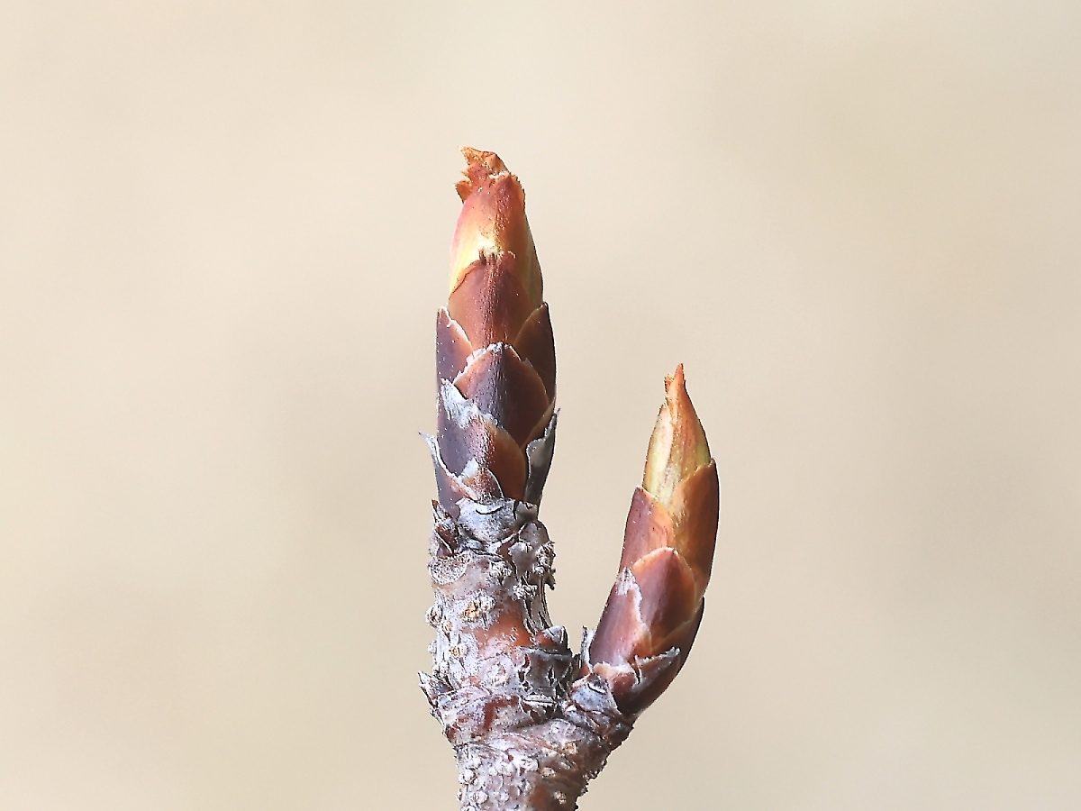 MEMO: 2月中旬の4月並みの高気温により、冬芽が膨らみ先端の黄緑色が はっきりし、紅色も見えており、一気に葉が出てくるのが近づいている状態です
