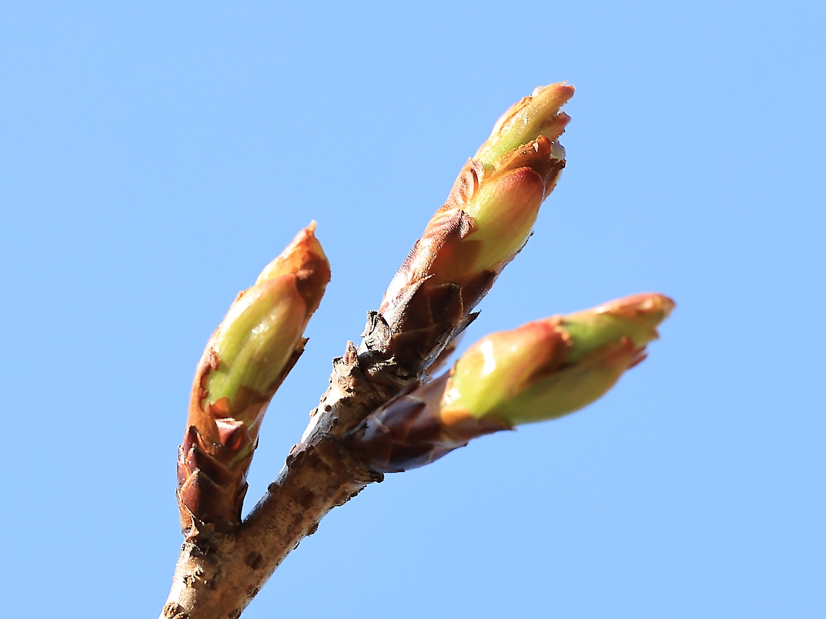 MEMO: 冬芽が膨らみが更に増し、先端が割れ、葉らしきものが 出始めている状態で、この様態でもまだ蕾らしきものは見当たらない状態です