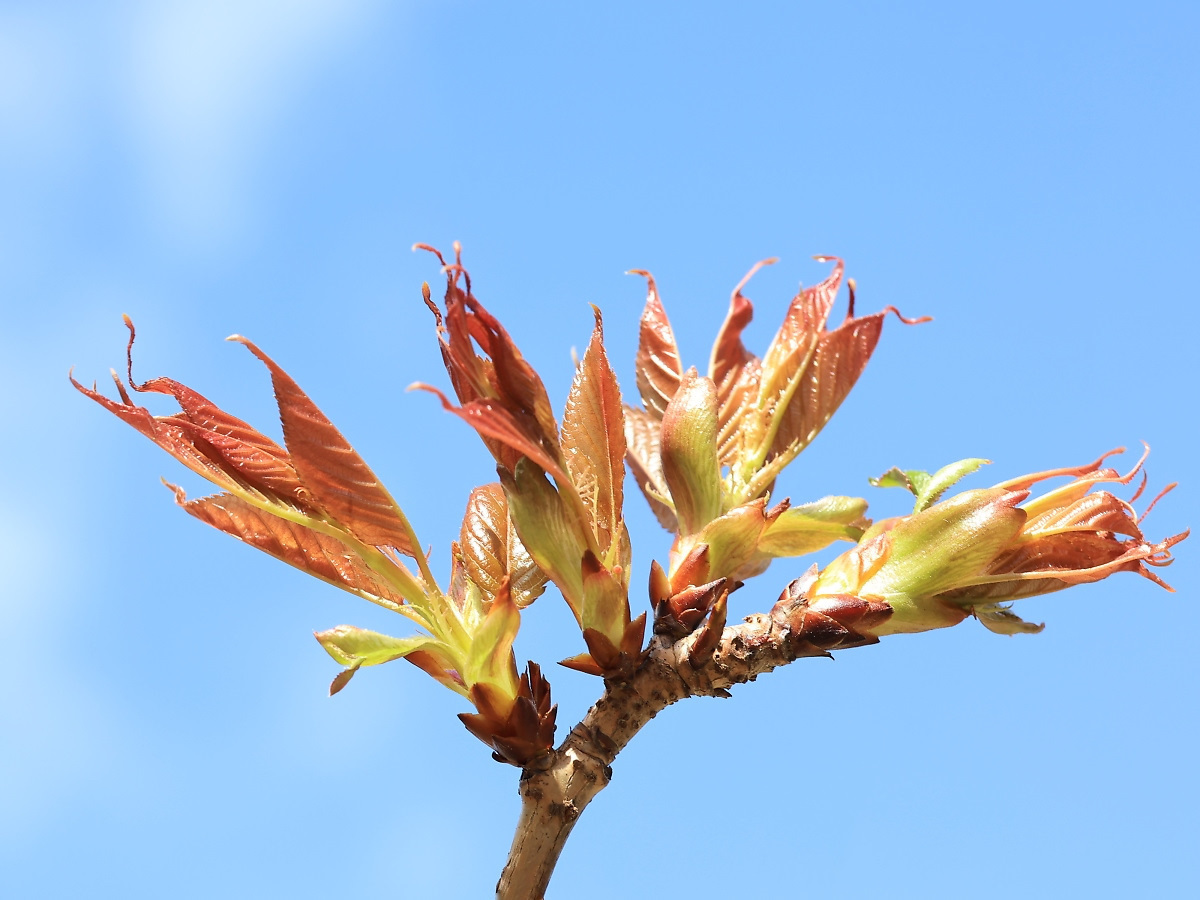 MEMO: 若葉が開き始めた状態ですが、 この様態でもまだ蕾らしきものは見当たらない状態です