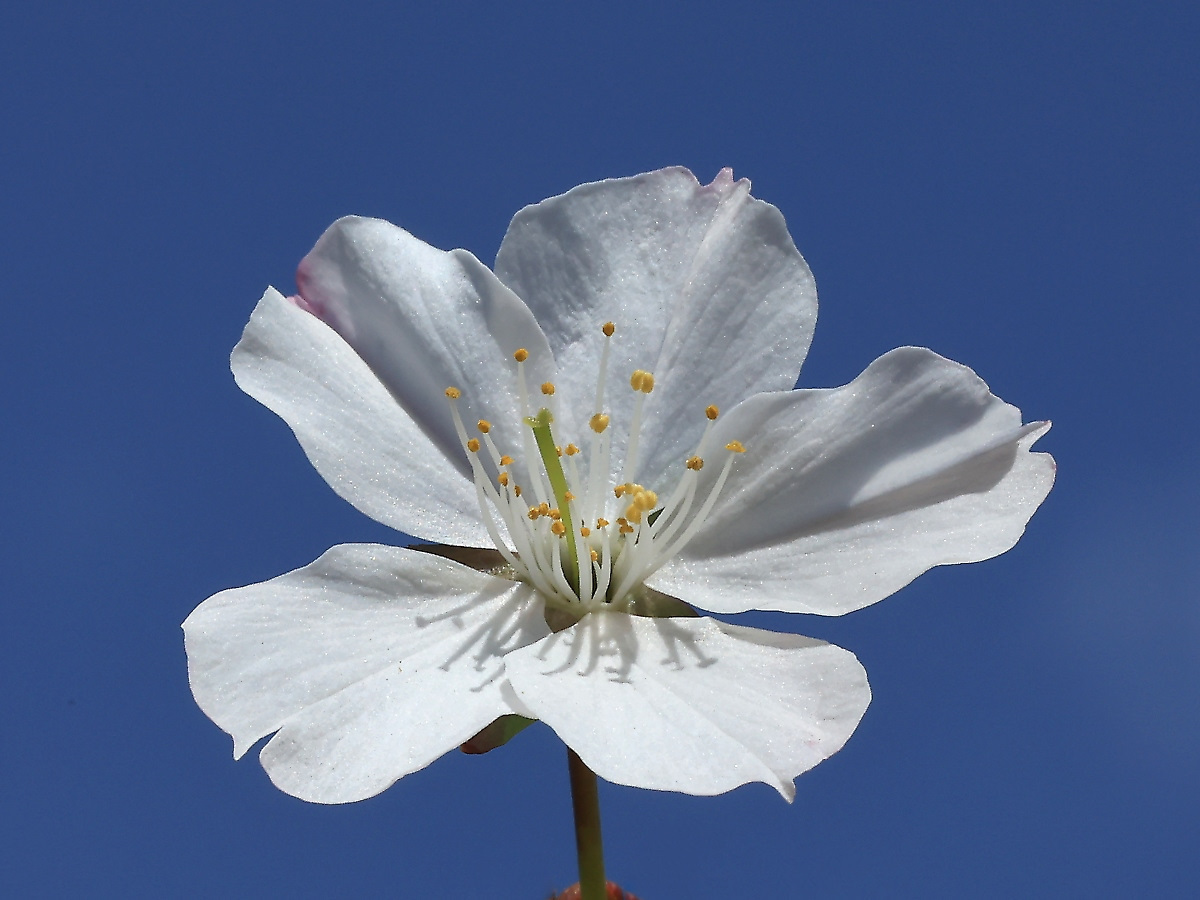 MEMO: 開花したばかりの山桜で、一重咲きの中輪で、 花色は白色で、昨年植栽から6年目にしてやっと花が見られました