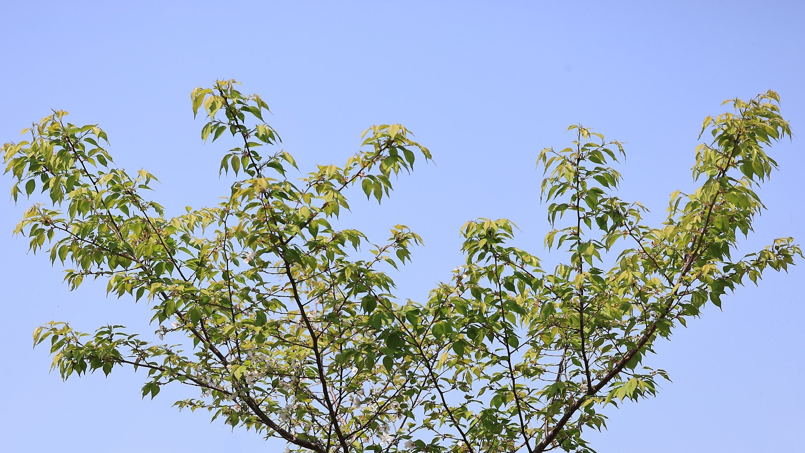 MEMO: 花時期も終わりこのようにすっかり葉桜になった山桜ですが、山桜は 木によって進み具合に大きな開きがあり、花時期を特定するのが難しい桜です