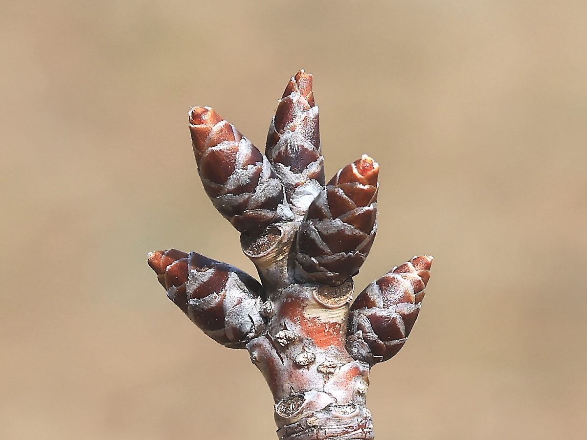 冬芽が伸びて膨らみ先端が割れ始めている状態です