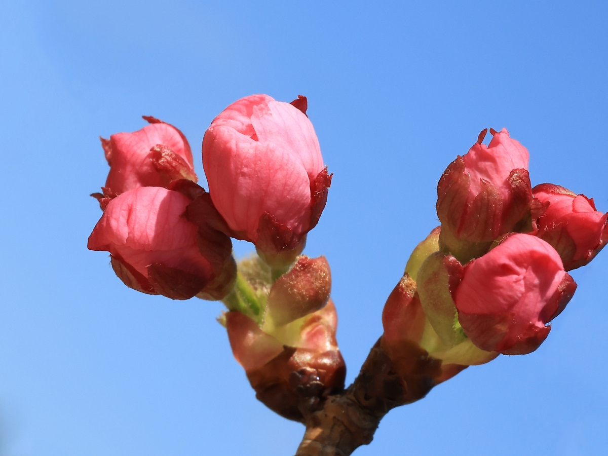 MEMO: 蕾が出揃い紅色の花弁も出て、開き始めているものもあり、 あと2~3日で開花する可能性がある状態です